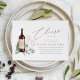 Planning a wine themed or wine tasting couples shower, or hosting the big event at a winery or vineyard? Invite your guests with our elegant wine tasting couples wedding shower invitations, featuring a bottle of burgundy red wine and two wine glasses and adorned with green watercolor eucalyptus leaves and foliage. "Cheers to Love" appears in chic calligraphy script lettering. For a finishing touch, personalise the wine bottle label with the couple's initials. Perfect for wedding showers in wine country, winery or vineyard settings.