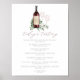 Charming botanical wine tasting menu sign displays your wine selections topped by a bottle of burgundy red wine with the couple's initials inscribed, and two wine glasses on a bed of green watercolor eucalyptus leaves and foliage. Designed to match our Cheers to Love invitation collection.