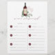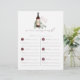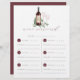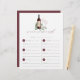 Designed to match our Cheers to Love wine tasting bridal shower invitations, cards feature two clinking wine glasses at the top and a bottle of burgundy red wine with the couple's initials inscribed on the label. "Wine Scorecard" appears in calligraphy script. Space below for tasting notes and ratings on six wines.