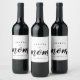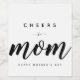 Personalised elegant black and white Cheers to Mum wine label in modern chic, minimalist typography style. Great for Mother's Day.