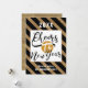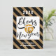 Cheers To New Year Modern Script Gold Black Stripe Holiday Card