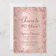 Celebrate in style with this Modern Rose Gold Glitter "Cheers to 90 Years" Birthday Invitation. This chic and feminine design features shimmering rose gold glitter details, a graceful swash tail calligraphy script, and a soft blush pink metallic foil-look background. Perfect for a glamourous ninetieth birthday party or any milestone event—easily customisable for a 40th, 50th, 60th, 70th, or even 80th birthday celebration.