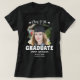 Elegant graduation celebration t-shirt featuring a graduates mortarboard, a photo of your son or daughter, the saying "Cheers to the Graduate", their name, place of study, and class year.