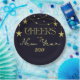 Raise a toast to the future with "Cheers to the New Year" written in radiant gold text, accented by shimmering stars on a deep blue background. Personalise it with a custom date to make your celebration uniquely memorable and stylish.