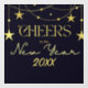 Raise a toast to the future with "Cheers to the New Year" written in radiant gold text, accented by shimmering stars on a deep blue background. Personalise it with a custom date to make your celebration uniquely memorable and stylish.