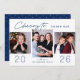 Cheers to the New Year Navy Blue 3 Photo Holiday Card