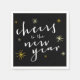 'Cheers To The New Year' Classic White Script With Simple Decorative Gold - Yellow Starbursts And Fireworks On A Black Background, Modern Holiday Party Paper Napkins.