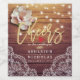 Faux Gold Foil Script Elegant Floral and String Lights with Lace Decorations on Rustic Wood Background.