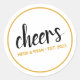 These custom fun "cheers" stickers are perfect for your wedding shower, engagement party, bachelor / bachelorette party, or anniversary party for favours / gifts! Or use them on Christmas wrapping or Holiday cards. The modern design features "cheers" in large black script text. Customise the bride and groom's names and established year for a truly personalised favour. Check out my coaster and mug collection for more favour / gift ideas.