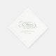 These diagonally printed cocktail napkins feature a stylish “Cheers” in elegant sage green calligraphy, paired with the couple’s names in classic serif and a modern formatted date. The white background keeps things clean and timeless, while the angled layout adds visual energy and sophistication to your table decor. Ideal for stylish weddings, engagement parties, and rehearsal dinners, this design delivers personalised charm with a minimal twist.
