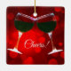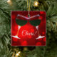 This is a fun wine themed ornament with two toasting red wine glasses and the word "Cheers!". It's that time of year for holiday cheer! Makes a fun Christmas gift too.