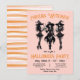 Three pretty Halloween witches cheering in the holiday in colours of black and white with the background colours of modern pink and orange. Great for a bachelorette party, bridal shower, baby shower or a girls getaway near the day of the dead or Halloween! All wording can be changed.