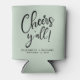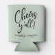 Give your wedding guests, bridal party and groomsmen a customised keepsake souvenir of your special day. This modern sage green can cooler wedding party favour features "Cheers Y'all!" in a stylish script. Add your first names and wedding date.
