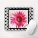 Cheery Pink Gerbera Daisy on Black/White Gingham Mouse Mat