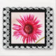 Cheerful floral mouse pad. Pink gerbera daisy on a black & white gingham checked background.