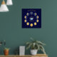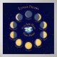 This charming lunar chart shows 10 phases of the moon's cycle, including the first part known as "Earthshine" where it is said that the new moon is holding the old moon in its arms. The centre of this chart has a cute illustration of planet Earth surrounded by fluffy white clouds and the sensible words "You Are Here - Terra Firma."