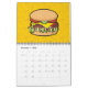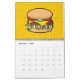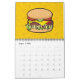 Cheeseburger cartoon illustration. Junk food outline icons yellow pattern background. Custom text.