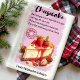 Add a sweet touch to your kitchen with this Cheesecake Recipe personalised kitchen towel. Featuring a delicious cheesecake recipe, this towel is perfect for both decoration and practical use. Customise it with your name or a special message, making it a thoughtful gift for cheesecake lovers and home bakers.