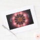 This fractal image depicts a large cheesecake cut into 12 slices. Each slices appears to be decorated with a bluish-green edible stencil of an abstract-looking angels. There is a triangle that represents the dress, two upside-down triangles above it that look like wings. Instead of a head, there are seven bands that stretch towards the top of the stencil. Surrounding the cheesecake are alternating pink and orange beads meant to serve as ornate decorations. Finally at the very top and bottom of the cheesecake are two yellowish angels. If you want a little slice of Heaven, then this is the perfect design for you!