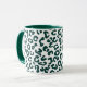 Coffee mug in a digital, minimalist, animal print in a cheetah pattern - spots in deep pine green on a white background