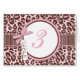 Cheetah print in pink and brown with stripe print trim and 3D look pink bow seating card.