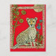 Cheetah on a Red Background With Flowers Postcard
