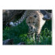 The fastest running land animal, the cheetah, is on the hunt for tasty prey! She lives in Africa and the Middle East, and in zoos in captivity in other parts of the world. She can run up to an amazing 70-75 mph, and is a very successful hunter. Her focus, speed, and agility are her strengths. The beautiful and distinct marks on her fur differentiate her from the other predatory big cats, or felines. It is believed that the dark black tear marks on her face below the eyes may help to deflect sunlight and help with her vision, much like the black marks human football players use on their cheeks during a game.