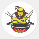 This design is of a chef and a wok. The chef has kitchen knives in his hand and is standing over the wok. This chef and a wok design looks great. Perfect for yourself or as a gift