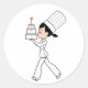 Cute Sticker with a chef carrying a birthday cake. This is a great sticker for any culinary lover, or it would be a great addition to any children chef themed party. Many chef cartoon styles and products available at zazzle.com/shopdesigns. TIP: you can change the background colour, click on the CUSTOMIZE button for more options.