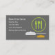 Chef for hire business cards simple but powerful modern design includes modern cookware, a text layout you can easily personalise and enough character and style to stand out.