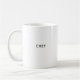 This custom coffee mug features "Chef", meaning "Chief" in French, in classic sans serif typography. Makes a funny gift for the boss, or anyone who is good at taking charge, and with editable text, you can customise it on both sides. Several styles and colours available.