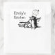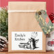 Adorable illustration of a rabbit cooking over a stove with a freshly baked pie in the background. Great to personalise for a budding chef.