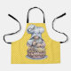A Yellow Striped Small Apron For Either A Boy Or Girl With The Word Chef And A Gnome Decorating A Cake