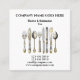 An elegant and vintage set of faux gold and silver cutlery which have delicate and ornate floral etchings on them set against a stark white background that has black templates for your custom details.
