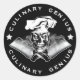 Show off your killer chef pride with this unique culinary themed skull chef design, featuring a cool and classy metallic-like skull wearing his chefs hat. Two crossed smoking cleavers replace his traditional crossbones. The title Culinary Genius is arched along the top and bottom of this product, in bold copperplate text, sure to let everyone know that you are a professional chef of high stature, and all about no-nonsense cooking. This must-have digital chef skull image was created for chefs, cooks, restaurant owners, and anyone with a fierce passion for food and flavour. And skulls. Visit www.zazzle.com/thechefshoppe to see more cool cooking chef skulls designed by sdesiata.