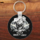This unique chef skull key chain entitled "Iron Chef," features a cool and classy metallic-like skull in front of a silver platter wearing a chef's hat, on top of a damask design with sharp crossed carving knives. An excellent choice for the executive chef, sous chef, personal chef, home cook, line cook, or anyone with a fierce passion for cooking. And skulls. Visit www.zazzle.com/thechefshoppe to see more cool culinary inspired skulls.