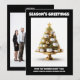 A beautiful and luxurious Christmas tree made up of pots and pans is framed by a black background and rests on a golden serving platter. A golden star appears at the top of the tree and a white background makes the design pop. Your custom festive season greeting and business name appear above and below the design and the reverse side has text plus QR code (change to your own code or logo) and photo templates on it. These are ideal for the festive holiday period for chefs, restaurants, culinary cooks, catering companies, caterers and kitchen appliance manufacturers. Convey the spirit of the season to customers, friends and family. Season's Greetings and Happy holidays!