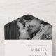 Modern All In One Wedding Invitation featuring a simple and minimalist layout with your wedding details in right alignment along with your favourite photo at the top. All design elements are in grey over a neutral ivory background and may be changed in the design editing tool. This chic "seal and send" all in one wedding invitation with a minimal yet elegant design goes well with any style of contemporary wedding.