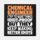 Funny Chemical Engineer Sayings "Chemical Engineer I Try To Make Things Idiot Proof But They Keep Making Better Idiots". Grab this Funny Chemical Engineer design as a funny gifts for an awesome mum, dad or friend.