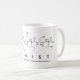 Chemist spelled out in amino acids as C H E M I S T (Cysteine Histidine Glutamic acid Methionine Isoleucine Serine Threonine) on a mug for the scientist in you.