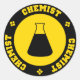 Chemist - caution yellow and black sticker with collegiate style lettering and Erlenmeyer flask.