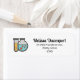 Address labels with a cute illustration of a test tube holding yellow liquid and a rounded flask/beaker holding green liquid with red bubbles.