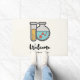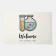 Designed with a cute illustration of a test tube holding yellow liquid and a rounded flask/beaker holding green liquid with red bubbles.