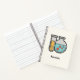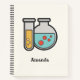 Spiral notebook with a cute illustration of a test tube holding yellow liquid and a rounded flask/beaker holding green liquid with red bubbles.