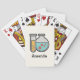 Playing cards with a cute illustration of a test tube holding yellow liquid and a rounded flask/beaker holding green liquid with red bubbles.
