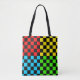My original art on this tote bag features a chequerboard pattern of squares in a four-square colour block style. The front has Red-Black, Yellow-Black, Blue-Black and Green-Black squares, and the back has the same with the colour blocks switched. This bag has a retro vibe for a classic touch. These bags are great for carrying groceries, books, bible studies, toys, or use as a beach bag or gym bag; anything you need to carry around! This can also be used as a Gift Bag - stuff it with all kinds of goodies for anyone or as a swag bag at weddings! These bags are 16” x 16” with a 28” strap. All bags have a black laminated lining for sturdy support as well.