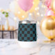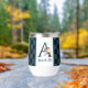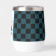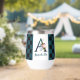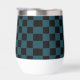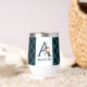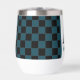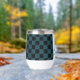 Trendy wine tumbler with fancy florals and large letter / initial A with a black and blue chequerboard border. Personalise with first or last name