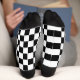 Original digital artwork on these fun socks featuring a vintage retro chequerboard pattern in black and white. These playful crazy socks are considered a sustainable product and are printed with water-based inks. Cosy and comfy and make a great gift. One size truly fits all.
