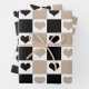 Chequerboard Hearts in Taupe, Black, and White Wrapping Paper Sheet