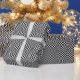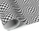 This wrapping paper features a black and white chequerboard design, which creates an optical illusion.